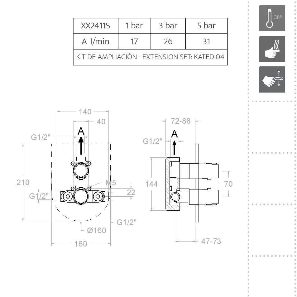 • HOTBLOCK — система, предотвращающая подачу слишком горячей воды при резком падении давления холодной воды (например, когда кто-то включил холодную воду в другом кране или произошёл слив). Эта система защищает от ожогов.