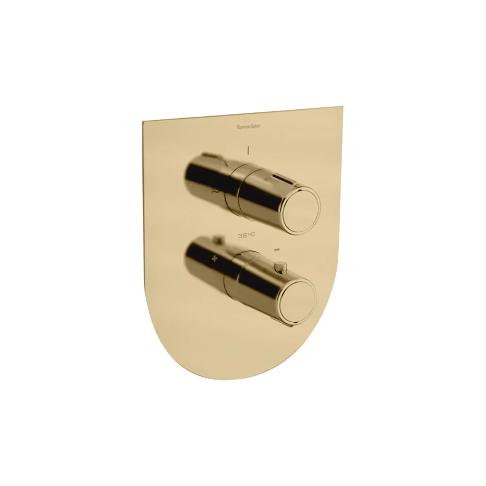 Представляем вашему вниманию уникальный и стильный смеситель для душа Ramonsoler Tzar встраиваемый термостатический на 1 выход, модель 342411SOC, выполненный в благородном золотом цвете. Этот великолепный представитель коллекции Tzar отражает минималистичный дизайн, вдохновленный конической формой Alexia, гармонично сочетая в себе элегантность и функциональность.