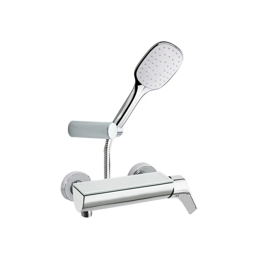 Смеситель Ramonsoler Urban Chic отличается не только функциональностью, но и эргономичным дизайном — на корпусе расположена удобная стеклянная полка, идеальная для хранения аксессуаров для душа. Пропускная способность в 20 литров в минуту при 3 барах и ультранизкий уровень шума менее 20 дБ делают использование этой модели максимально комфортным.