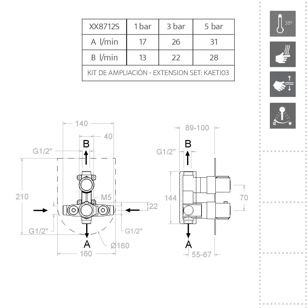Основной особенностью данной модели является наличие передового термостата с парафиновым картриджем. Эта инновация обеспечивает стабильное удержание выбранной температуры воды, что позволит вам насладиться душем без волнений. Кроме того, система HOTBLOCK, встроенная в смеситель, предотвращает возможные ожоги, блокируя подачу слишком горячей воды при внезапных изменениях потока. Эта защита обеспечивается благодаря термостатическому картриджу, который автоматически регулирует температуру до комфортных 38°.