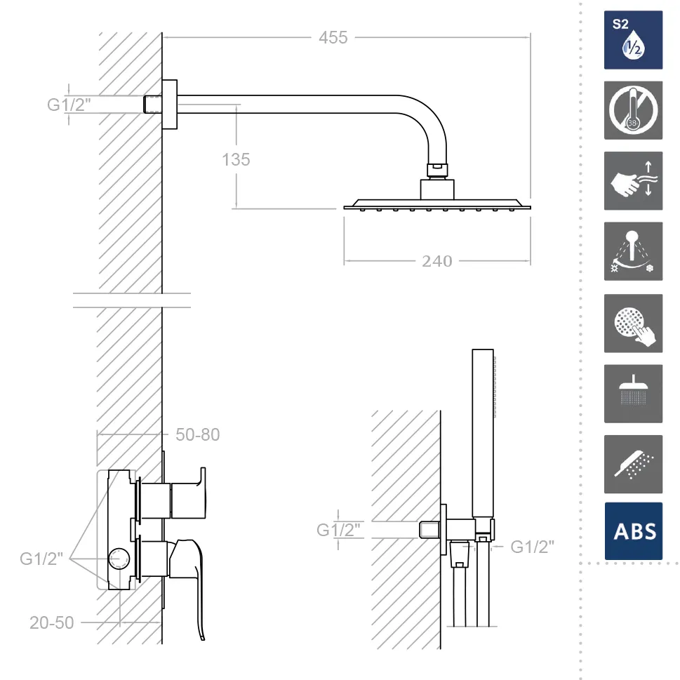 Смеситель для душа Ramonsoler Ypsilon встраиваемый с тропическим и ручным душем plus K6415021
