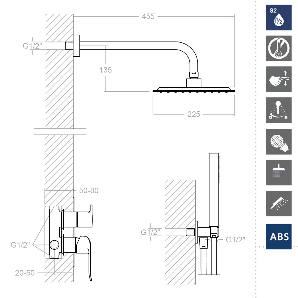 Смеситель для душа Ramonsoler Ypsilon встраиваемый с тропическим и ручным душем plus K6415022
