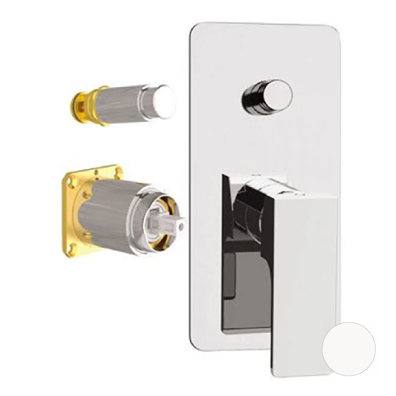 Смеситель для душа Remer Absolute белый матовый AU09KBBO — это стильное и функциональное решение для вашей ванной комнаты. Изделие представляет собой внешнюю часть смесителя для скрытого монтажа, которая предназначена для использования в душе. Смеситель выполнен в современном стиле и обладает угловатой формой, что подчеркивает его изысканный дизайн. Белая матовая поверхность добавляет элегантности и легко вписывается в любой интерьер. Обладая одним рычагом управления и переключателем, данный смеситель обеспечивает простоту использования и комфорт. Для оптимальной работы необходимо объединить смеситель с углубленной коробкой арт. RR BOX, что гарантирует надежный и долговечный монтаж. Картридж диаметром 35 мм обеспечивает плавное управление потоком воды. Изготовленный из высококачественной латуни, смеситель отличается прочностью и устойчивостью к коррозии.
