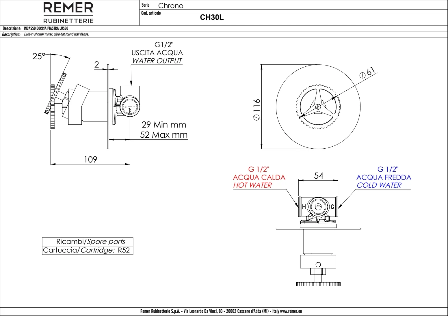 Представляем вашему вниманию смеситель для душа Remer из коллекции Chrono, который станет идеальным дополнением для вашей ванной комнаты. Этот смеситель отличается современным стилем и специально разработан для скрытого встраиваемого монтажа. Он оснащен одним рычагом и ультра-плоским круглым настенным фланцем. Диаметр картриджа составляет 25 мм, а для встраиваемых душевых элементов - 35 мм. Изделие выполнено в округлой форме и имеет стальной цвет, что добавляет изысканности и элегантности вашему интерьеру. Смеситель предназначен для душа и не оснащен изливом, что делает его стильным и практичным решением для современных ванных комнат.