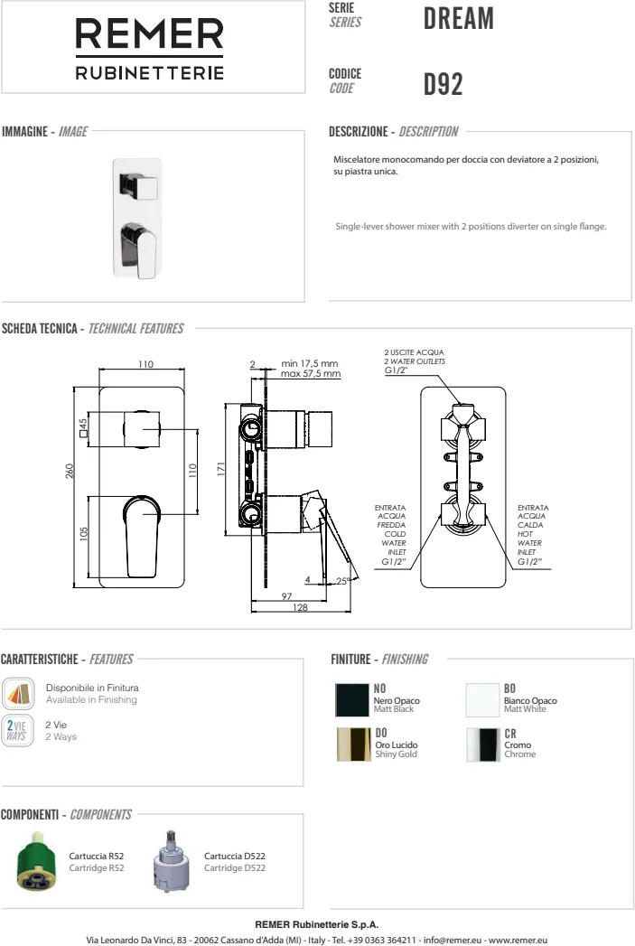 Откройте для себя современный дизайн и высокую функциональность с однорычажным смесителем для душа Remer из коллекции Dream. Это изделие, выполненное из прочной латуни, станет идеальным решением для встраиваемого монтажа в вашем душевом пространстве. Благодаря скрытому монтажу и переключателю потока, поддерживающему два выхода и один вход, смеситель обеспечивает максимальное удобство использования. Его угловатая форма и глянцевая хромированная поверхность добавят стильности вашему интерьеру, гармонируя с любым современным дизайном. Он без излива, что делает его идеальным для использования в душевых кабинах. Этот смеситель - внешняя часть конструкции, легко управляемая с помощью рычага, и рассчитан на подключение с использованием стандартной подводки 1/2".