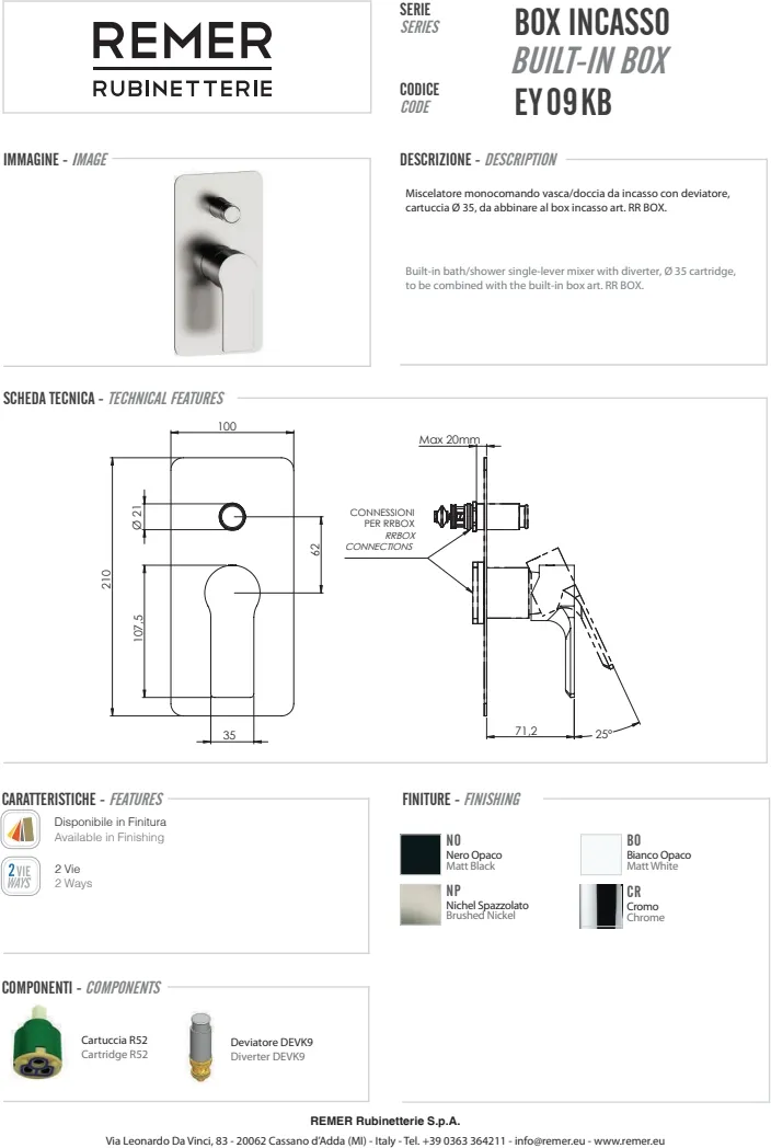 Представляем вашему вниманию однорычажный смеситель для душа из коллекции Energy бренда Remer. Этот стильный смеситель является внешней частью системы для скрытого монтажа и идеально подойдет для ценителей современного дизайна. Он оснащён картриджем Ø 35 мм и требует подключения с углубленной коробкой арт. RR BOX. Лакончный угловатый дизайн в черном матовом цвете придаст вашей ванной комнате элегантный и современный вид. Смеситель предназначен для встраиваемого монтажа и не имеет излива, что делает его идеальным решением для душевых кабин.