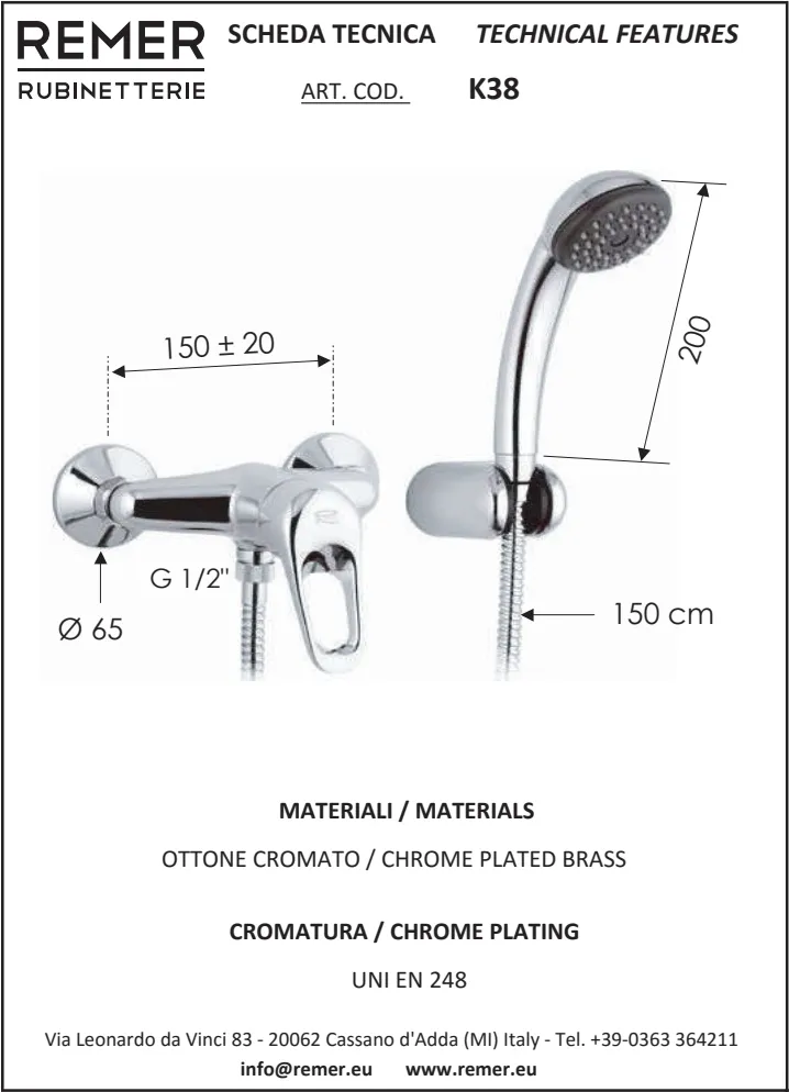 Смеситель для душа Remer из коллекции Kiss - это идеальный выбор для тех, кто ценит качество и стиль. Этот настенный смеситель с одним фронтальным рычагом станет отличным дополнением для любой ванной комнаты. Он выполнен из качественного материала с хромированной поверхностью, что гарантирует долговечность и современный вид. В комплекте идут лейка, шланг и кронштейн, что делает его использование еще более удобным. Благодаря классическому дизайну и округлой форме, этот смеситель легко впишется в любой интерьер.
