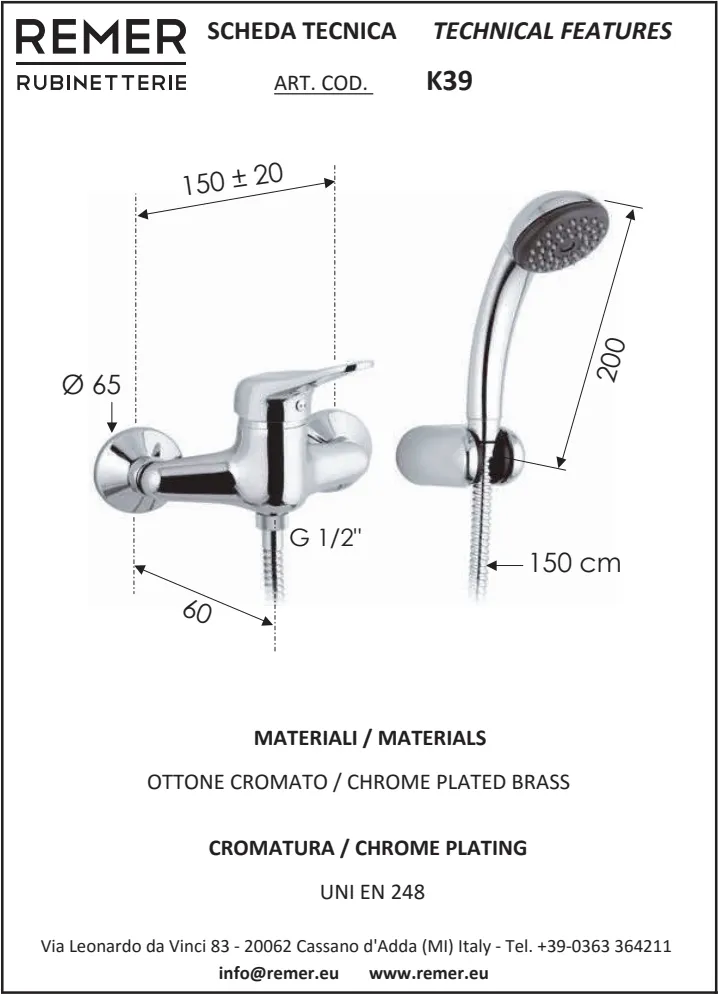 Представляем вашему вниманию смеситель для душа из коллекции Kiss от известного бренда Remer. Эта модель выполнена в классическом стиле, который гармонично дополняет любую ванную комнату. Смеситель для душа Remer Kiss изготовлен из высококачественных материалов, обеспечивающих долгий срок службы и надежность в эксплуатации. Он оснащен однорычажным управлением, что упрощает регулировку температуры и напора воды, а также комплектуется лейкой, шлангом и кронштейном, создавая полный функциональный набор для вашего комфорта. Хромированная поверхность придает изделию элегантный вид и защиту от коррозии. Смеситель рассчитан на настенный монтаж и имеет два отверстия для крепления. Это отличное решение для тех, кто ценит качество и стиль в каждом элементе интерьера.