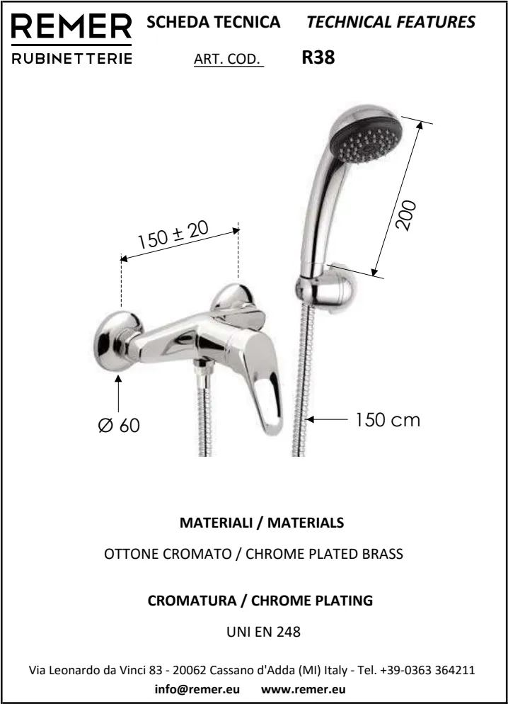 Представляем вашему вниманию настенный смеситель для душа из коллекции Remix от бренда Remer. Этот классический смеситель обладает округлой формой и оснащён одним фронтальным рычагом для удобного управления потоком воды. Он включает в себя лейку, шланг и кронштейн, делая комплект полностью готовым для установки и использования. Надежное рычажное управление позволяет легко регулировать температуру и напор воды.