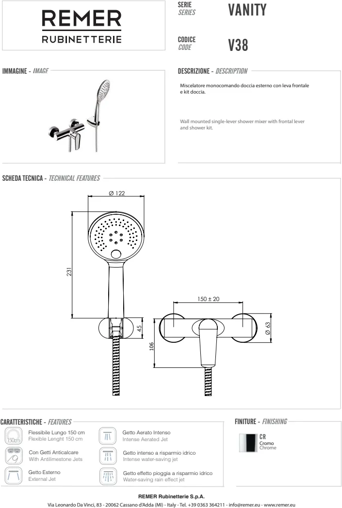 Смеситель для душа Remer из коллекции Vanity — это превосходный выбор для вашей ванной комнаты. Он выполнен в современном стиле и станет элегантным дополнением любого интерьера. Этот смеситель из высококачественной латуни оснащён всеми необходимыми элементами для комфортного принятия душа: лейкой, шлангом и кронштейном. Благодаря рычажному управлению, вы сможете легко регулировать температуру и напор воды. Устройство предназначено для монтажа на стену и имеет округлую форму. Смеситель обладает 4 режимами ручного душа, что позволит вам выбрать наиболее подходящий вариант струи для всех членов семьи.