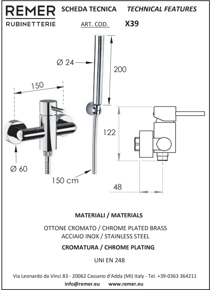 Представляем смеситель для душа из коллекции X-style от бренда Remer. Этот однорычажный смеситель с лейкой идеально подходит для установки в вашей ванной комнате. Изделие выполнено из высококачественной латуни, что гарантирует долговечность и стойкость к коррозии. Хромированная глянцевая поверхность придаёт смесителю элегантный и современный вид, который отлично впишется в любой интерьер. Благодаря рычажному управлению, вы с лёгкостью сможете регулировать поток и температуру воды. Смеситель устанавливается на стену, имеет два отверстия для монтажа и подходит для душа без излива, что освобождает больше пространства в душевой зоне.