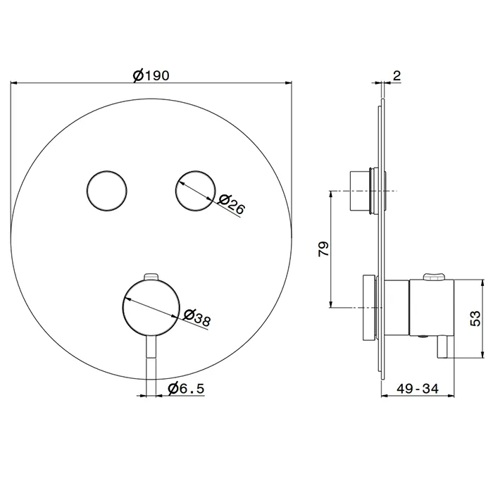 Смеситель для душа термостат Newform X-steel 316 на 2 источника, переключение - кнопки, для 27751, INOX 70426EX.50.050