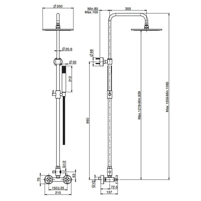 Смеситель для душа внешнего монтажа Fima Carlo Frattini Maxima с душевой штангой, верхним душем 250 и душевым комплектом, чёрный матовый F5305/2NS