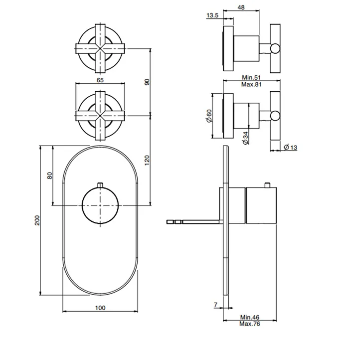 Смеситель для душа встроенный Fima Carlo Frattini Fimatherm Maxima, термостатический, 2 запорных вентиля, внешняя часть, чёрный матовый F5333X2NS
