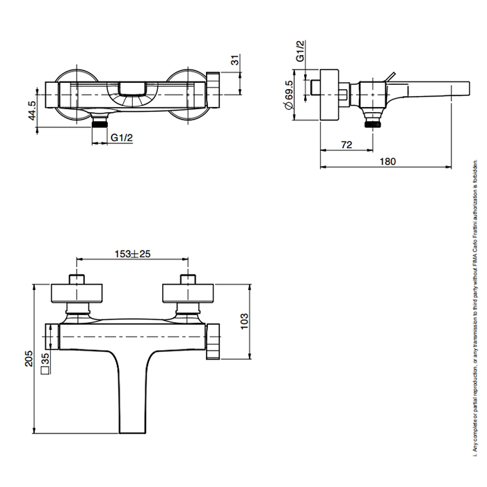 Смеситель для ванны и душа Fima Carlo Frattini Bathroom Zeta однорычажный, отверстия для монтажа-2, вынос излива, 182, чёрный матовый F3964/1NS