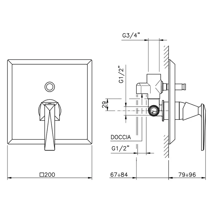 Смеситель для душа Nicolazzi Внешняя часть смесителя встраиваемого для душа с переключател 3096EXTCR35