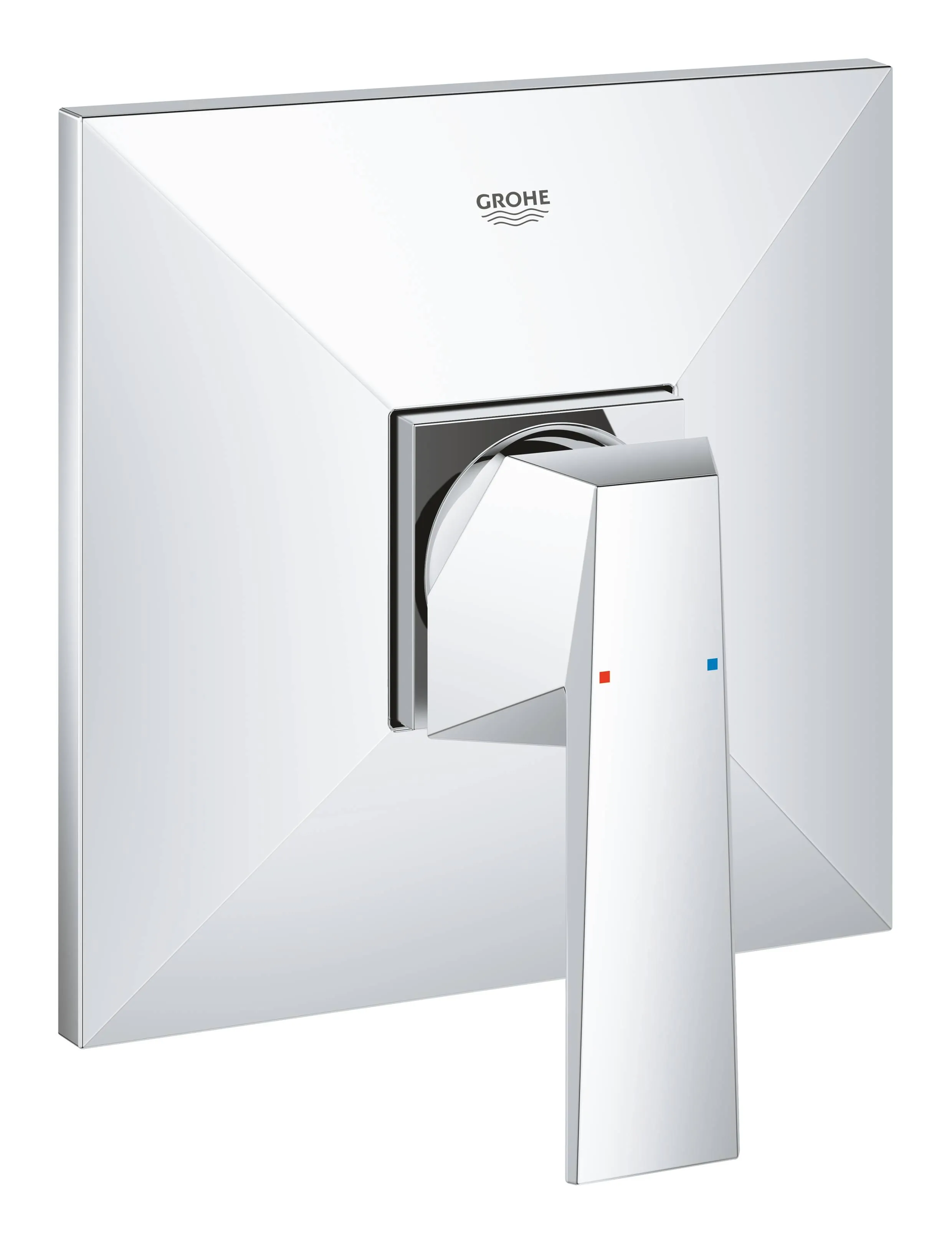 Allure Brilliant Смеситель однорычажный для душа комплект верхней монтажной части для GROHE Rapido SmartBox 35 600 000 GROHE SilkMove керамический картридж O 46 мм GROHE StarLight хромированная поверхность с настенными розетками GROHE QuickFix (скрытые эксцентрики, уплотнение, скрытый монтаж) металлическая накладная панель, регулируемая на 6° металлический рычаг распределения расхода: выход B или C = 30 л/мин без встроенного механизма