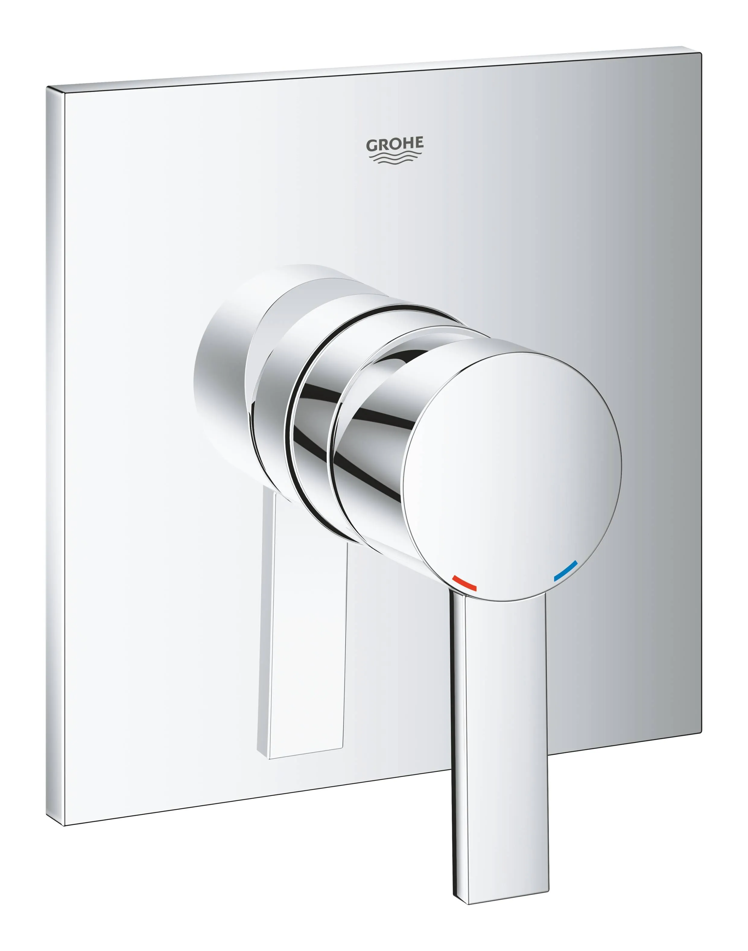 Allure Смеситель однорычажный для душа комплект верхней монтажной части для GROHE Rapido SmartBox 35 600 000 GROHE SilkMove керамический картридж O 46 мм GROHE StarLight хромированная поверхность с настенными розетками GROHE QuickFix (скрытые эксцентрики, уплотнение, скрытый монтаж) металлическая накладная панель, регулируемая на 6° металлический рычаг распределения расхода: выход B или C = 30 л/мин без встроенного механизма