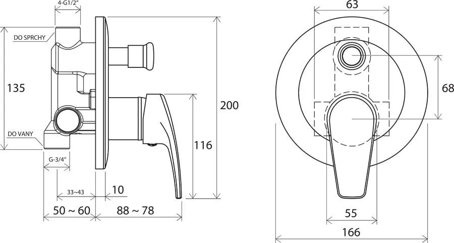 Предназначен для ванн (наполнение переливом и вывод для ручного душа) или для душевых уголков с фиксированной и ручной лейками.