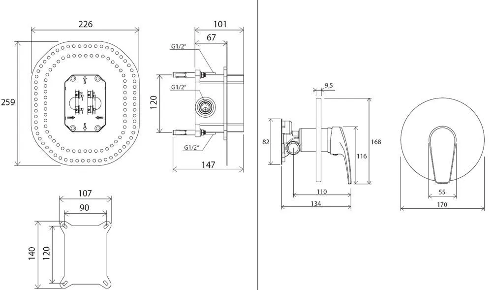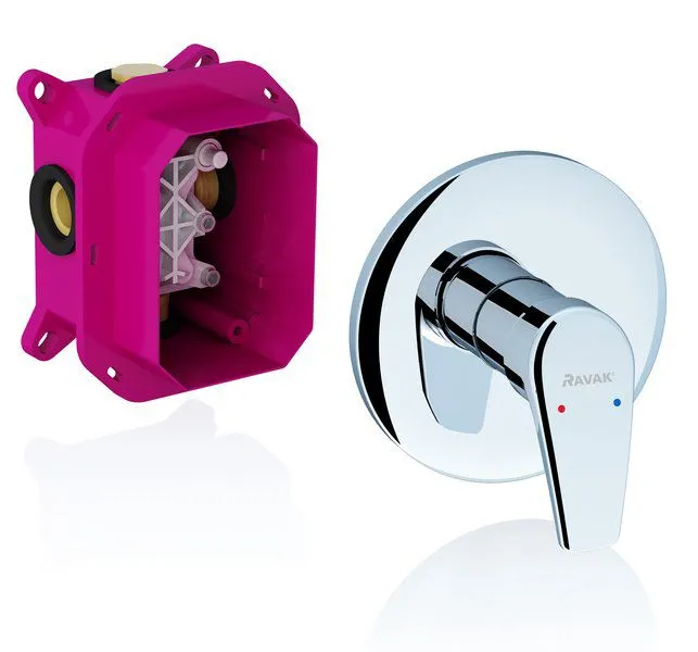 R-box содержит материал для крепления к стене, не содержит подключение к воде.