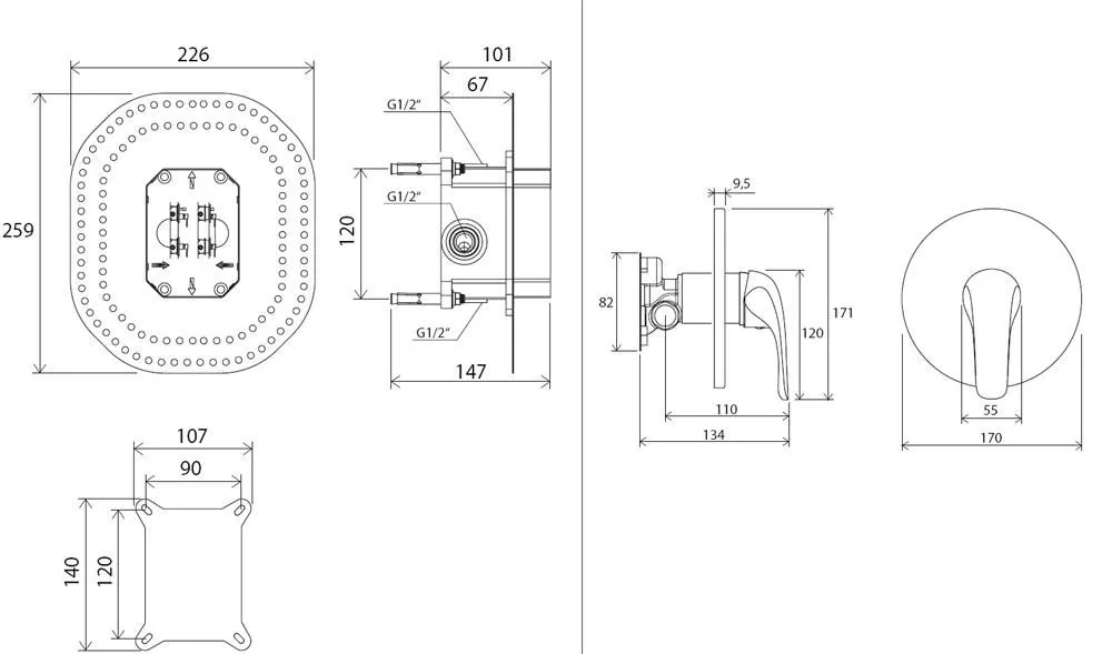 Смеситель скрытого монтажа Rosa комбинируется из двух элементов:
