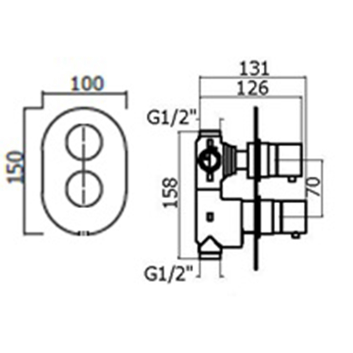 Смеситель термостат встраиваемый для душа Plumberia Selection Ixo 2 выход в к-те со встраив.частью, накл. овальная из нерж.стали, белый матов., XOT5040BO