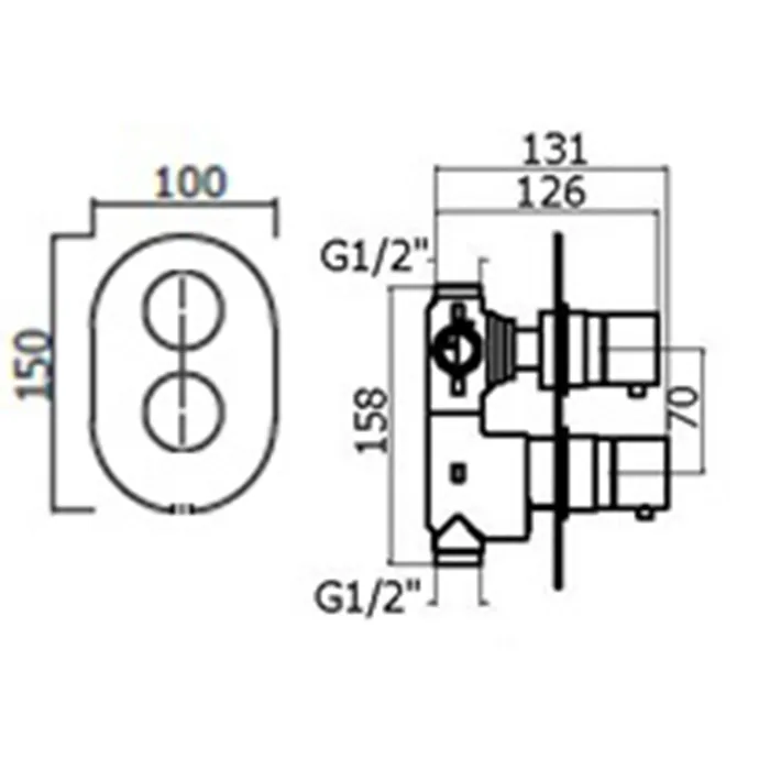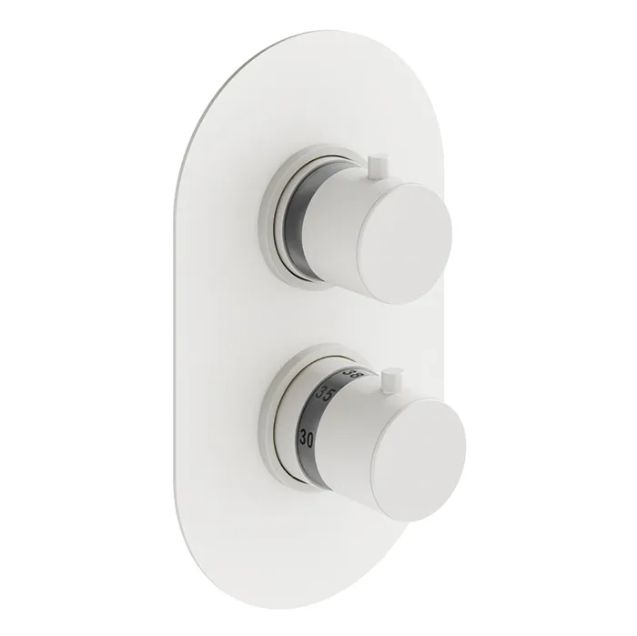 Смеситель термостат встраиваемый для душа Plumberia Selection Ixo 3 вых. в к-те со встраив.частью, накл. овальная из нерж.стали, белый матов., XOT5050BO