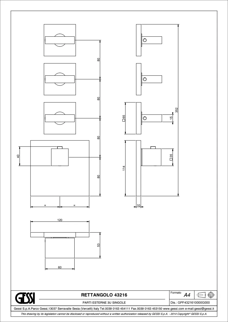 Смеситель термостатический для душа Gessi Rettangolo K 43216.031 выполнен в цвете хром.