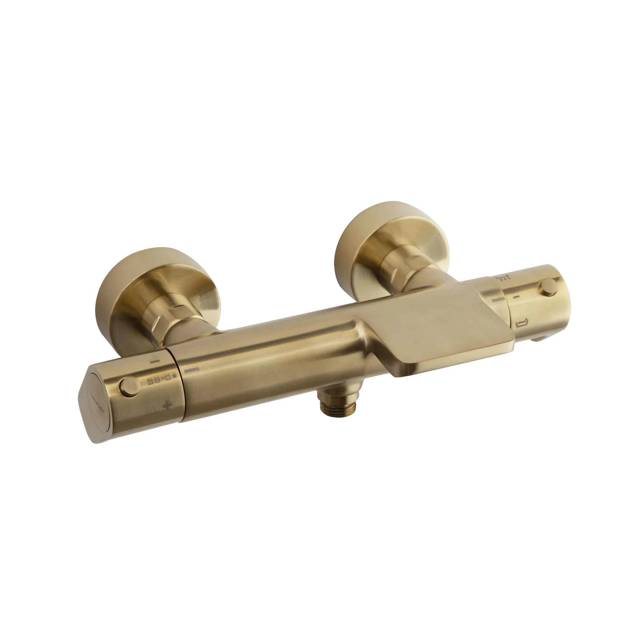Термостатический картридж модели гарантирует плавное регулирование температуры, а латунный корпус с PVD покрытием обеспечивает долговечность и стойкость к износу. Смеситель разработан для работы в широком диапазоне давления, рекомендованное значение – 3 бар.