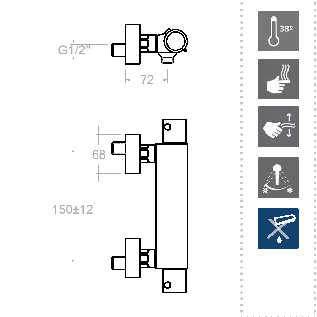 • HOTBLOCK — система, предотвращающая подачу слишком горячей воды при резком падении давления холодной воды (например, когда кто-то включил холодную воду в другом кране или произошёл слив). Эта система защищает от ожогов.