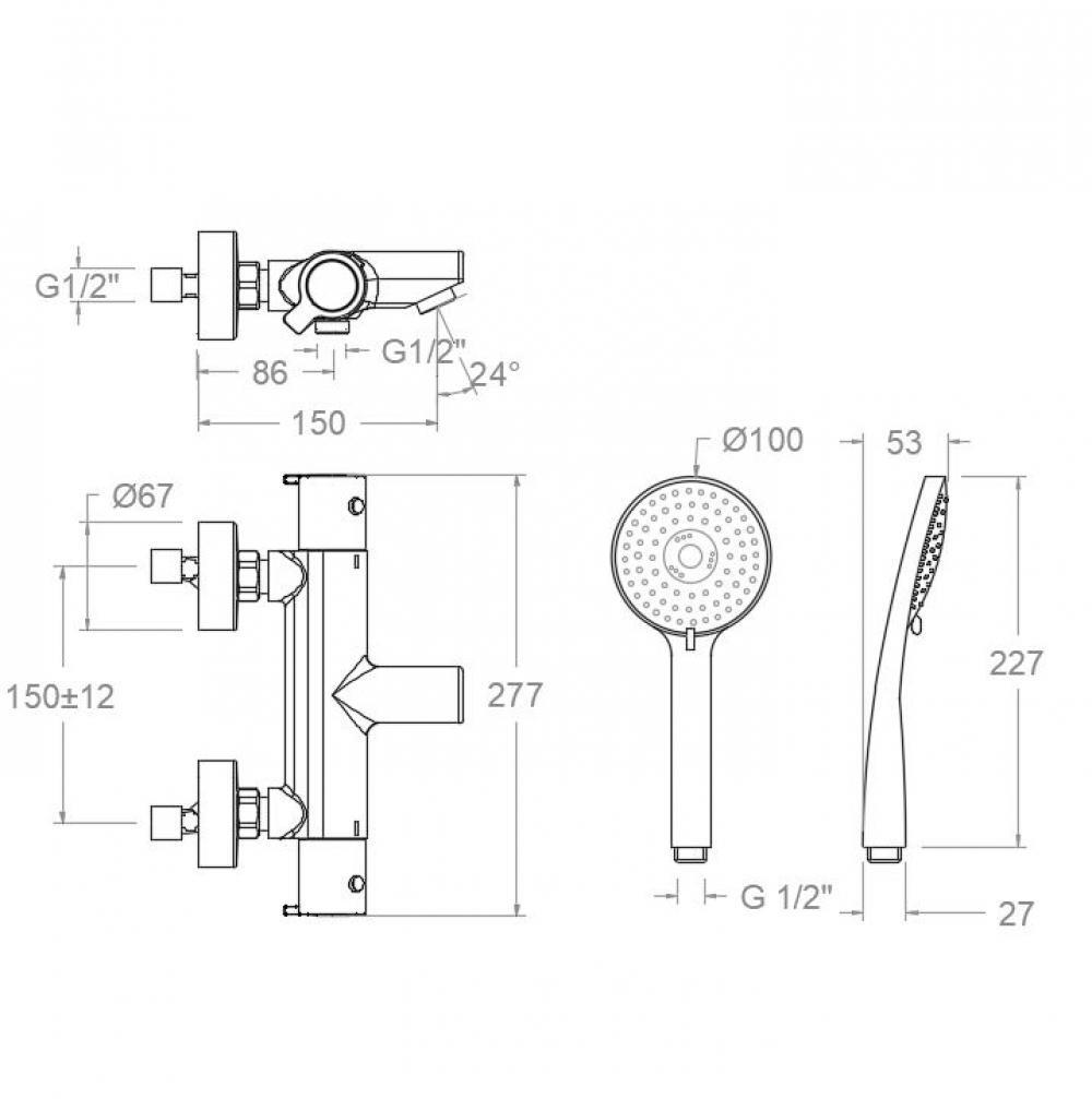 - Смеситель рассчитан на давление в 1-5 бар, обеспечивая комфортный расход: 20 л/мин для ванны и 12 л/мин для душа при 3 барах.