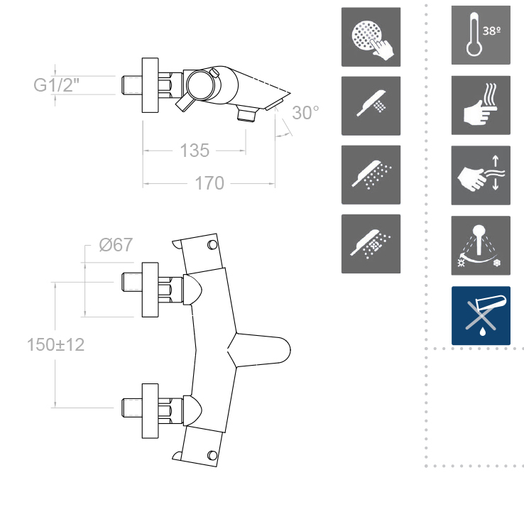 Смеситель рассчитан на давление от 1 до 5 бар, с рекомендуемым значением в 3 бара для оптимальной работы. Рекомендуется температура горячей воды 55 °С, максимальная же достигает 65 °С. Использование допускается при температуре до 90 °С в течение часа, обеспечивая высокий стандарт сопротивляемости.
