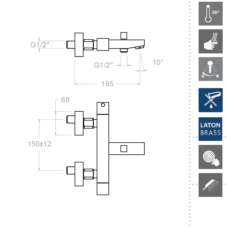 Смеситель Kuatro 4736MK изготовлен из прочной хромированной латуни с термостатическим картриджем, который позволяет поддерживать стабильные температурные настройки для безупречной работы. Специальный аэратор установлен под углом 10°, что гарантирует экономичный и качественный поток воды. Дизайн этого смесителя отличается прямыми углами и квадратными отражателями, а также удобной рукоятью для лёгкого переключения режимов.