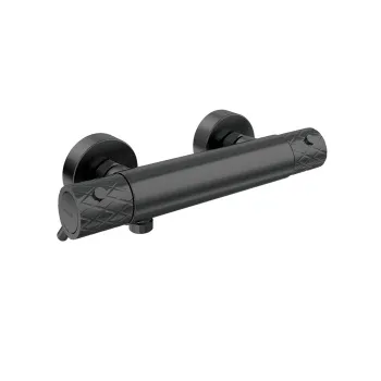 Смеситель изготовлен из высококачественной латунной основы, что гарантирует долговечность и прочность. Одной из ключевых особенностей этой модели является термостатический картридж, который обеспечивает стабильную и удобную регулировку температуры воды. Функция TERMOSTOP BLOCK предотвращает случайные ожоги, фиксируя температуру на комфортных 38 °C.