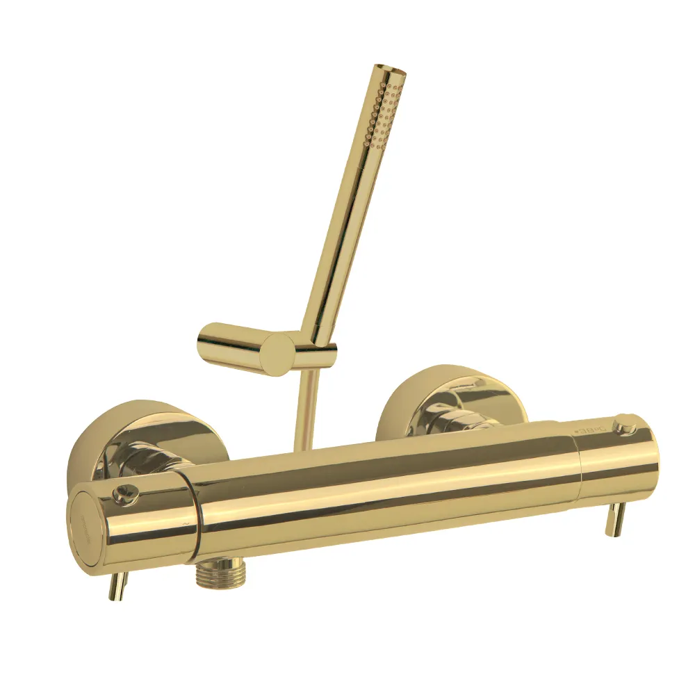 Представляем вашему вниманию смеситель термостатический Ramonsoler Odisea для душа с душевым комплектом золото 393401DOC — шедевр, сочетающий в себе современные технологии и элегантный дизайн. Этот смеситель станет не только функциональным элементом вашей ванной комнаты, но и стильным акцентом интерьера.