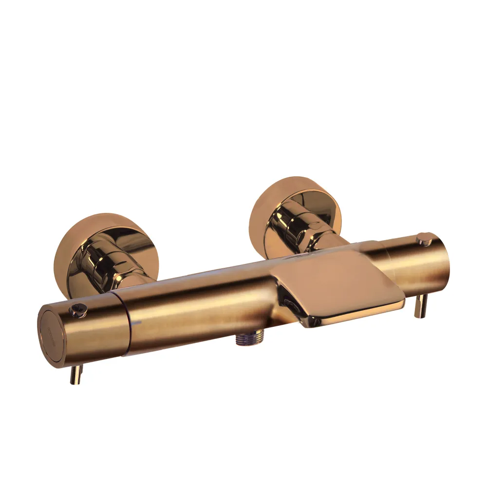 Смеситель Ramonsoler Odisea оснащен картриджем 1703 T + 4000 и системой защиты от ожогов Hot Block, а также функцией Termostop, устанавливающей безопасный предел температуры на 38 °C. Благодаря медному покрытию с PVD технологиями, данный смеситель не только устойчив к гидравлическим ударам, но и сохраняет свою блестящую внешность надолго.