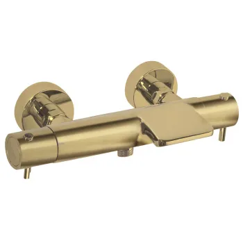Откройте для себя инновационный и стильный подход к оформлению ванной комнаты с термостатическим смесителем Ramonsoler Odisea для ванны с каскадным изливом в роскошном золотом исполнении (артикул 393901SOC). Этот шедевр из раздела "Смесители для душа" объединил в себе прогрессивные технологии и современный дизайн, идеально подходящий для тех, кто ценит эстетику и комфорт.