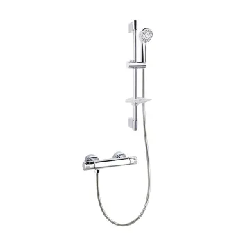 Смеситель термостатический Ramonsoler Termotech для душа с душевым комплектом и штангой 969402BT — это сочетание инноваций и стиля. Этот изысканный прибор создан с использованием передовых технологий и хромированной латуни, что обеспечивает его долговечность и элегантный внешний вид.