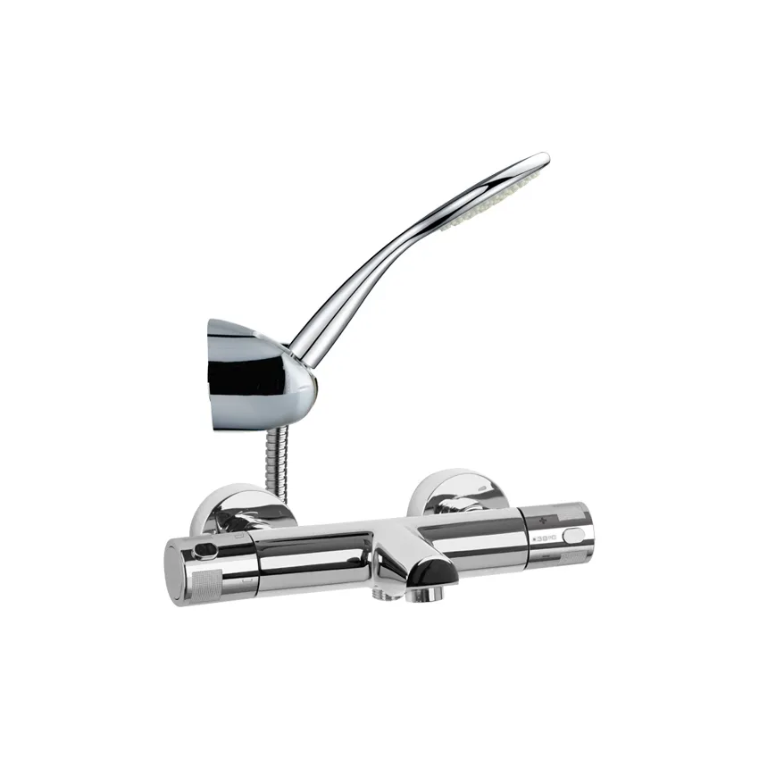 Смеситель изготовлен из прочной хромированной латуни, что гарантирует долговечность и элегантный вид. Благодаря термостатическому картриджу вы легко сможете задать и поддерживать необходимую температуру воды в диапазоне от 20° до 50° C. Забудьте о постоянной регулировке – достаточно один раз установить желаемую отметку, и наслаждаться оптимальным водным потоком.