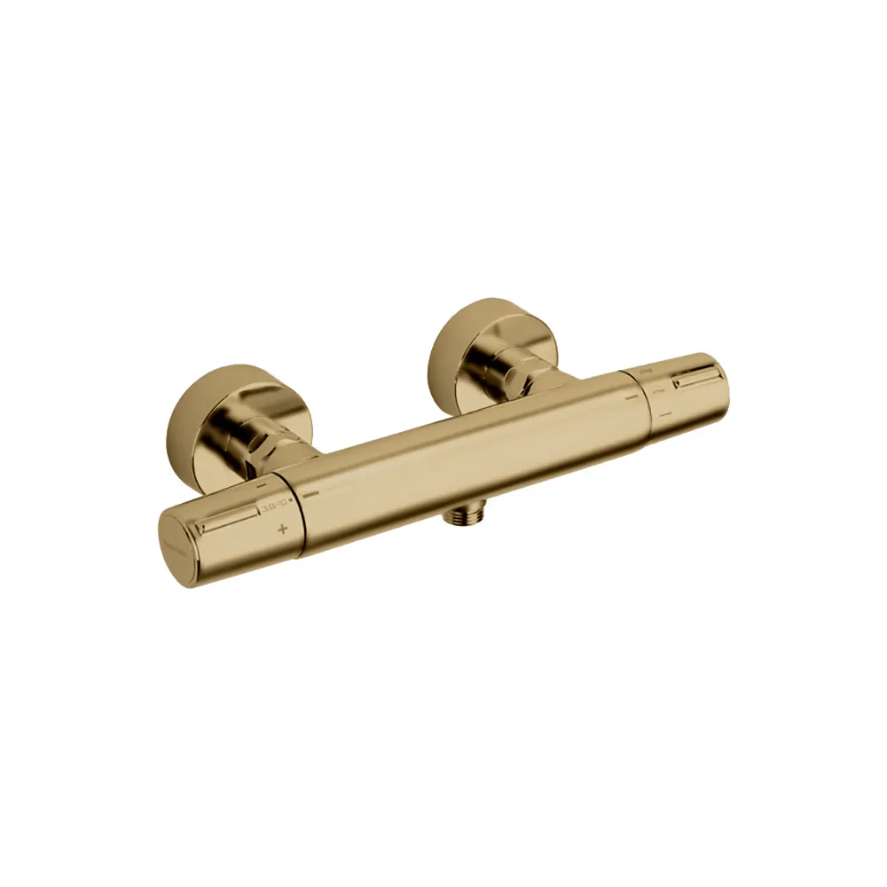 Элегантность и функциональность объединены в великолепном термостатическом смесителе для душа Ramonsoler Tzar в изысканном золотом оттенке, модель 343401SOC. Этот смеситель, входящий в новаторскую коллекцию Tzar, выдержан в минималистичном стиле, который подчеркивает изящество и современность дизайна.