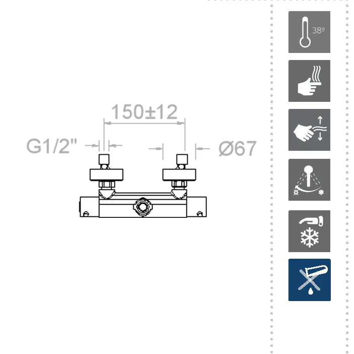 - Система HOTBLOCK — ваша защита от ожогов. Она блокирует подачу воды слишком высокой температуры, автоматически снижая нагрев, если возникают изменения давления, например, при включении другого смесителя или использовании стиральной машины.