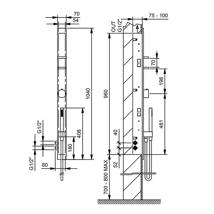 Термостат для душа Fantini Ak/25 на 2 источника, с ручн.душем, наружная часть, Matt Gun Metal PVD 48 P5 T302B
