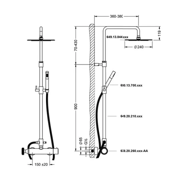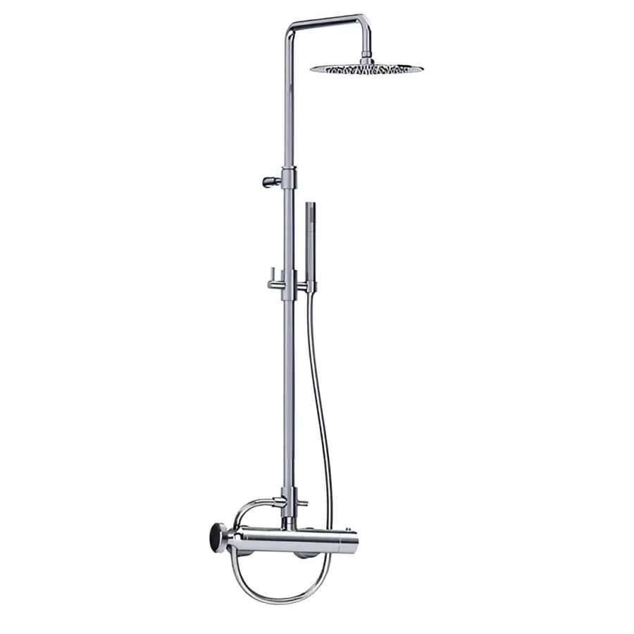 Термостат для душа Joerger Valencia представляет собой высококачественное настенное устройство, которое идеально подходит для комплектации со стойкой. Он оснащён термостатическим картриджем с ограничителем температуры на уровне 38C, что обеспечивает безопасное использование. Керамический картридж 1⁄2“ гарантирует долговечность и надежность в работе, минимизируя риск протечек. Шланговое подключение 3⁄4“ и эксцентрики 1⁄2“ x 3⁄4 делают установку продукта максимально простой и удобной. Цветовая гамма матовая латунь/металл придаёт изделию стильный и современный вид, отлично вписывающийся в любой интерьер ванной комнаты. Этот термостат совместим с арт. 38.20.460.xxx-AA, что делает его отличным выбором для тех, кто хочет улучшить функциональность своей душевой стойки.