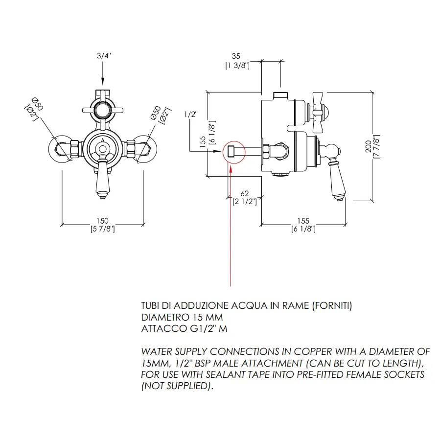 Термостат наружнего монтажа Devon&Devon для душевой для стойки MARK318/2/MARK618 с ручкой черной хром MARM74CRBD