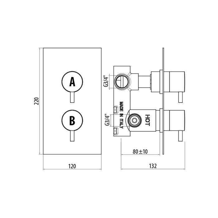 Термостатический встраиваемый смеситель для душа Gattoni Termostatici 2 рычага на 1 источника на прямоугольной пластине, хром TS992/22C0.Mcr