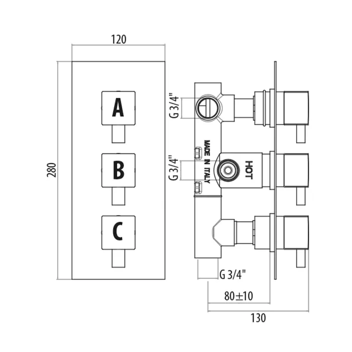 Термостатический встраиваемый смеситель для душа Gattoni Termostatici 3 рычага на 2 источника (внутренняя часть в комплекте), хром TS993/25C0cr