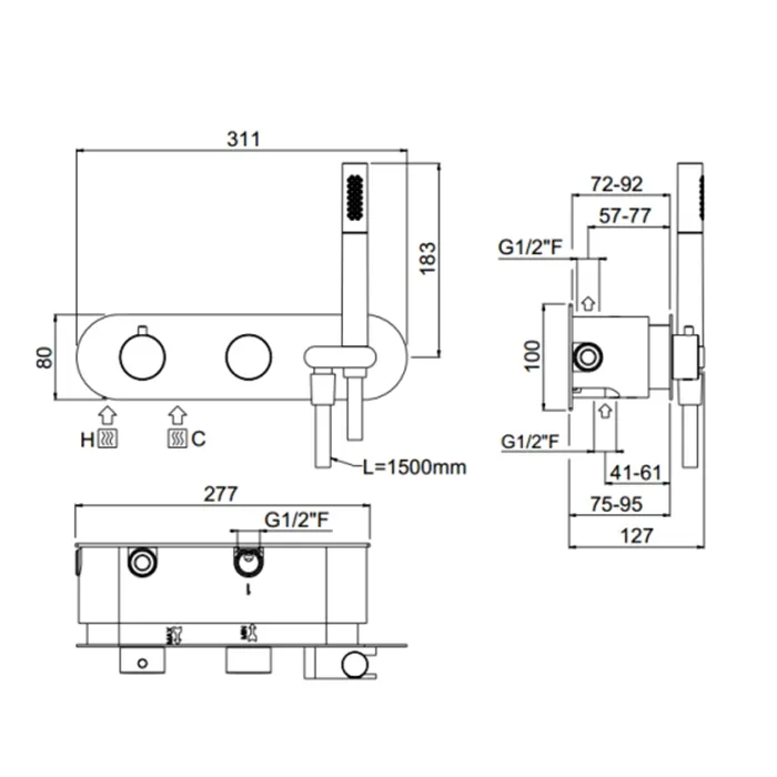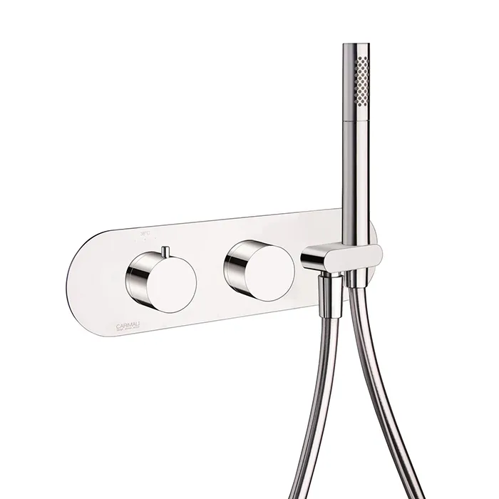 Внешняя часть Скрытый горизонтальный термостатический смесит c держателем длядуша держателем Carimali Iltondo 2 выхода, гладкий гибкий шланг, хром 21828EST/A-CR