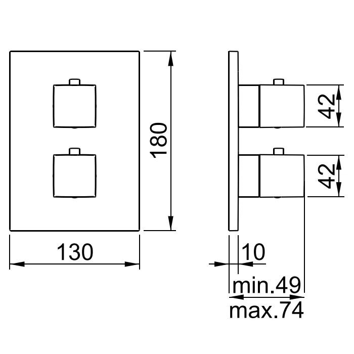 Внешняя часть термостата Almar Square Core на 2 потребителя, черный матовый, E176822.MB