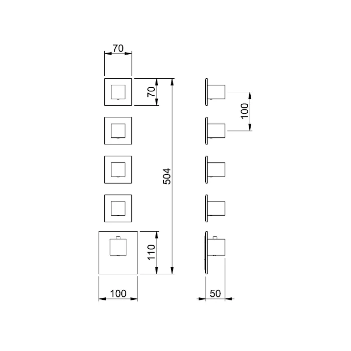 Внешняя часть термостатического смесителя Almar с 4-мя запорными вентилями, латунь брашированная pvd E180024.HB