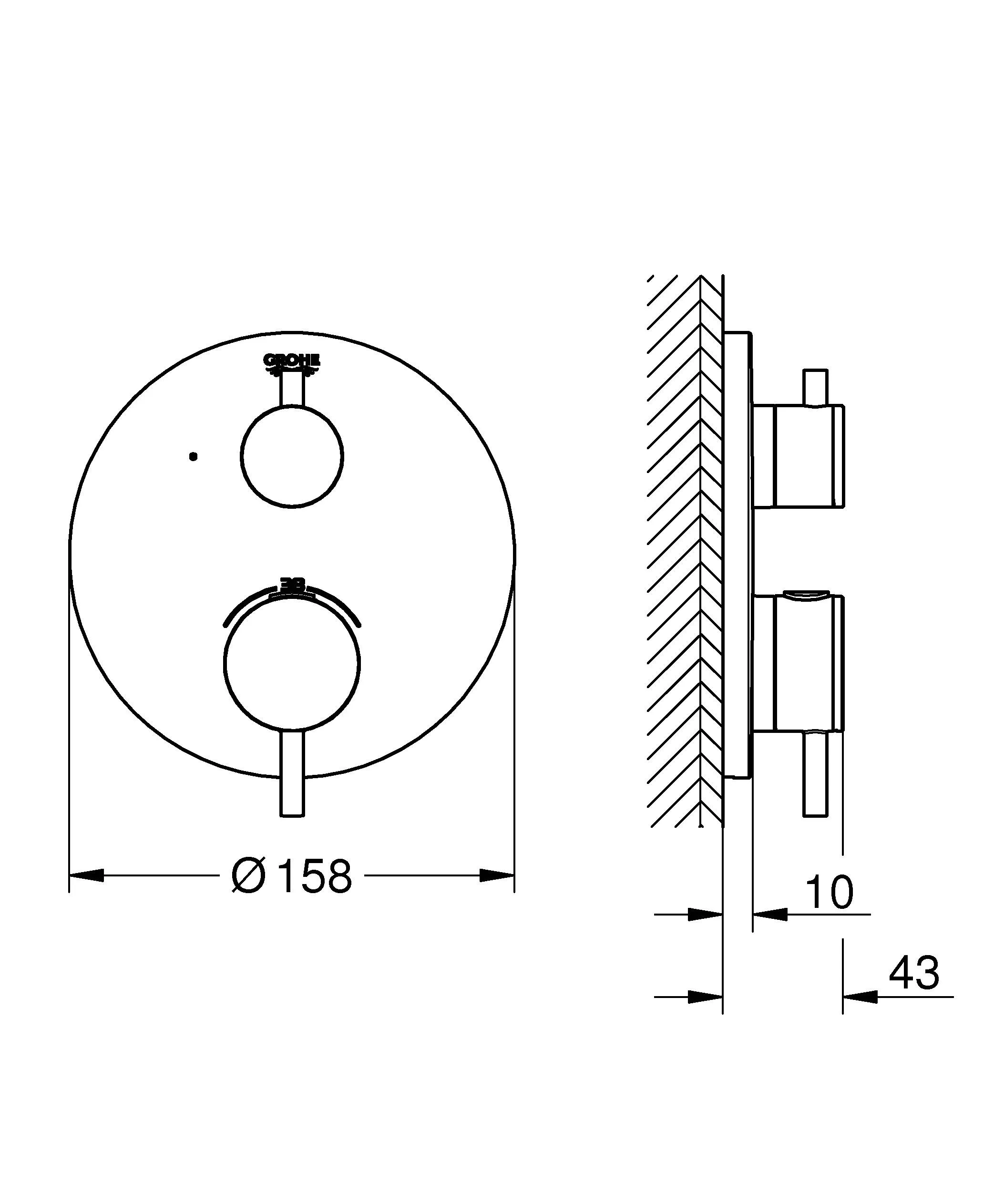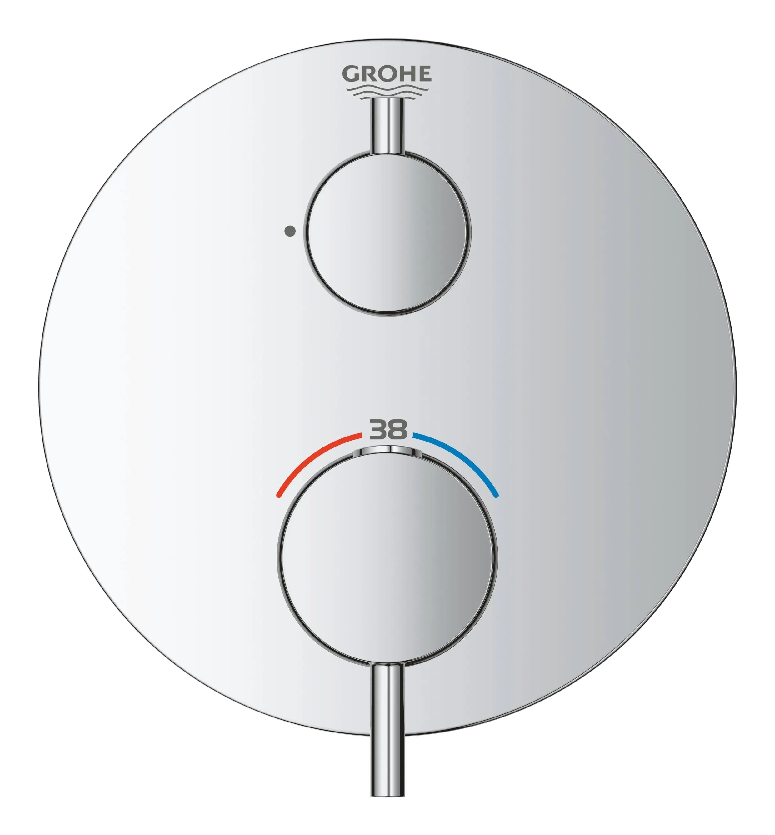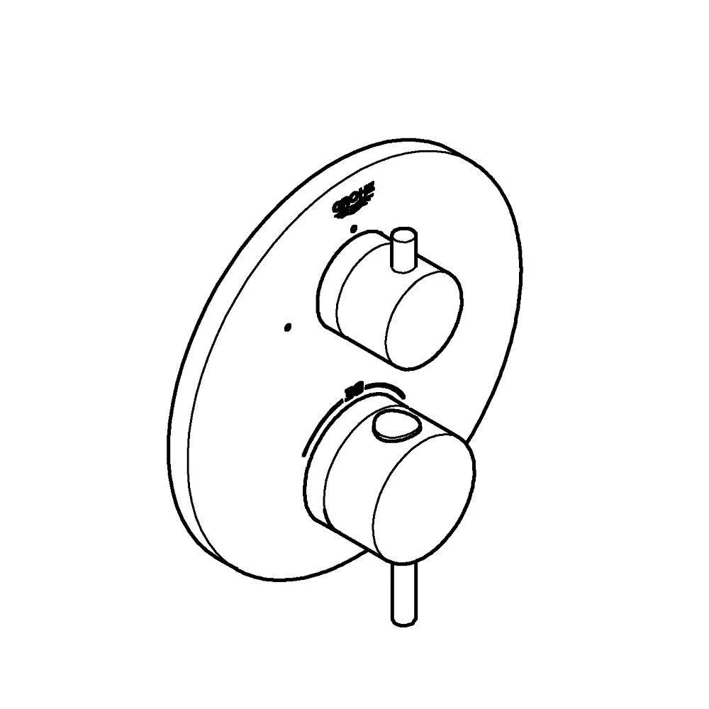 GROHE TurboStat встроенный термоэлемент GROHE StarLight хромированная поверхность с настенными розетками GROHE QuickFix (скрытые эксцентрики, уплотнение, скрытый монтаж) металлическая накладная панель, регулируемая на 6° GROHE SafeStop стопор безопасности при 38°C GROHE SafeStop Plus опционно ограничитель температуры на 43°C / 46°C, включен встроенные обратные клапаны и грязеулавливающие фильтры металлические рукоятки распределения расхода: выход B = 27 л/мин, выход C = 30 л/мин без встроенного механизма